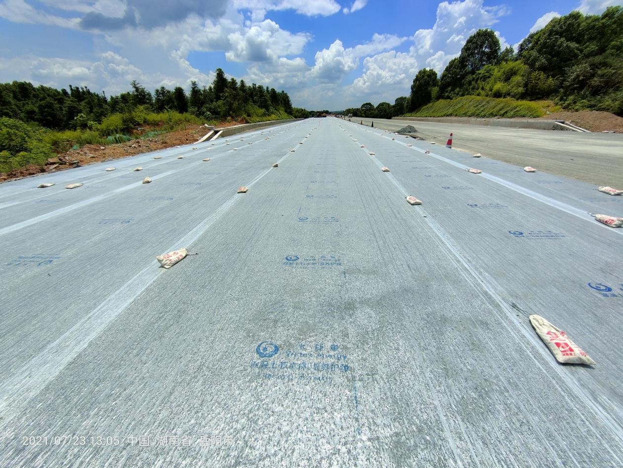 一張薄如蟬翼的“塑料膜”竟可以鎖住自重200倍的水分?走進水口-崇左-愛店高速公路(崇左至愛店口岸段,以下簡稱崇愛高速)K2、K8路面試驗段,3.4公里的水泥穩(wěn)定碎石都敷上了一層“面膜”。